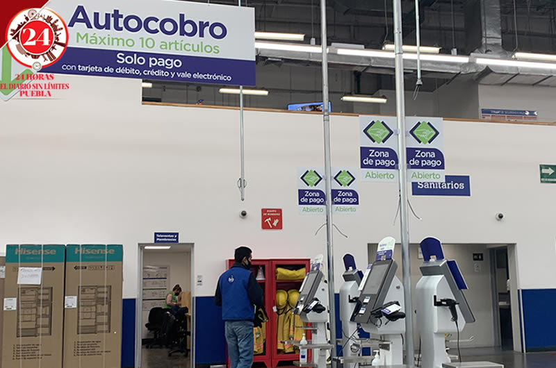 La finalidad de las cajas de autocobro es evitar el contacto entre clientes y cajeros como una forma de reducir los contagios de coronavirus en la capital poblana.