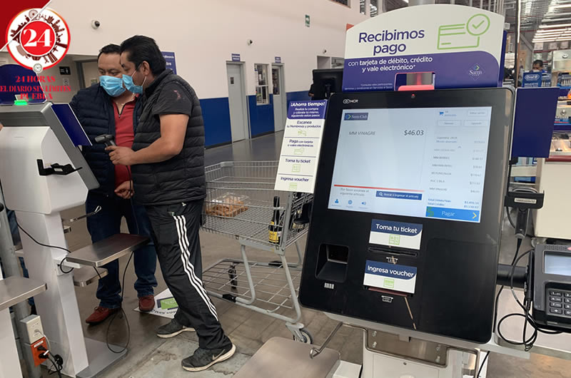 Ante la pandemia de covid-19 que permanece en el mundo, la empresa Sam’s Club colocó cajas de autocobro en la sucursal de La Noria.
