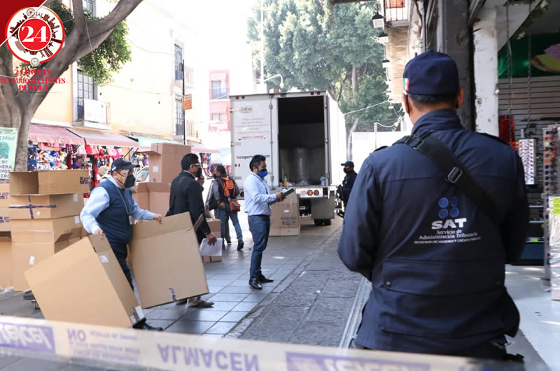Personal del Servicio de Administración Tributaria (SAT) realizó un embargo al establecimiento “Importaciones Universales Manolo”, ubicado en la calle 5 de Mayo del Centro Histórico.