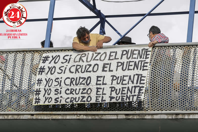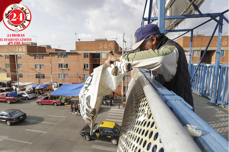Los colonos acudieron por la tarde a limpiar dicho puente y colocar cartulinas en donde piden a la alcaldesa, Claudia Rivera Vivanco que no lo retire, debido a que muchas personas o utilizan para poder cruzar la vialidad.