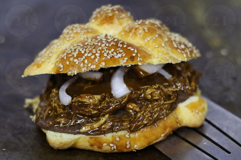 La hojaldra rellena de mole se está convirtiendo en la sensación durante esta temporada previa al Día de Muertos, por lo que diferentes restaurantes en la ciudad están ofreciendo esta peculiar comida.