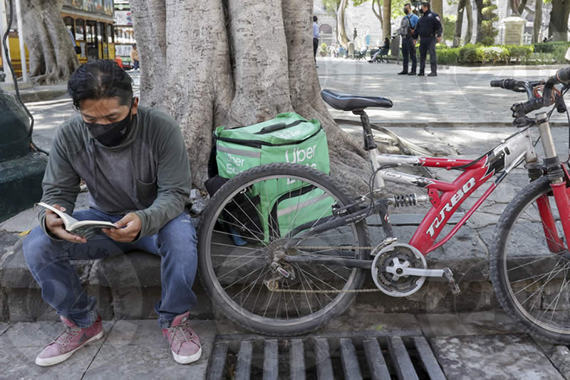 Repartidores de comida de las plataformas en Puebla, pararon sus labores este jueves debido a que exigen que un incremento en el salario y mejores condiciones laborales.