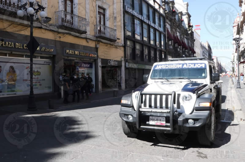 A la Plaza del Celular acudieron elementos de la Policía Municipal de Puebla, quienes indagan lo ocurrido.