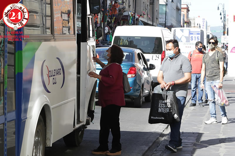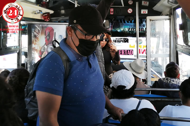 Los usuarios del transporte público en la ciudad de Puebla han saturado durante el fin de semana el transporte público, sin respetar la sana distancia para evitar contagios de covid-19.