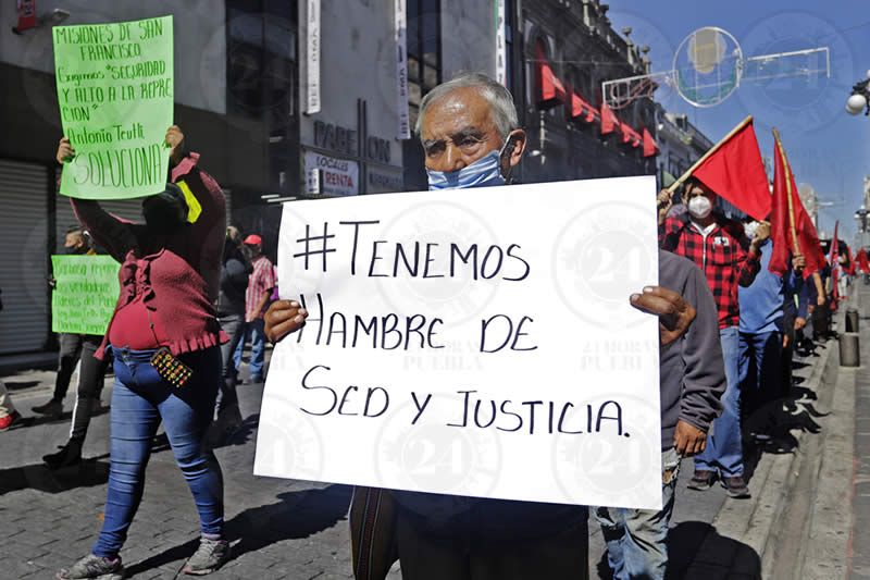 Al llegar al ayuntamiento, los integrantes de Antorcha con pancartas gritaron consignas contra el gobierno municipal que encabeza Claudia Rivera Vivanco.