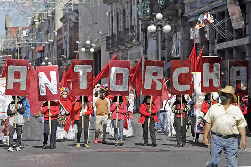 Los integrantes de Antorcha provocaron el cierre de circulación en la avenida Reforma desde la 3 norte por donde marcharon para manifestarse en el Palacio Municipal.
