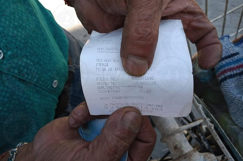 El hombre se dedica a vender dulces y es su única fuente de ingreso, por lo que como se puede observar en una de las fotografías, tras el retiro de los 600 pesos, su cuenta quedó prácticamente vacía.
