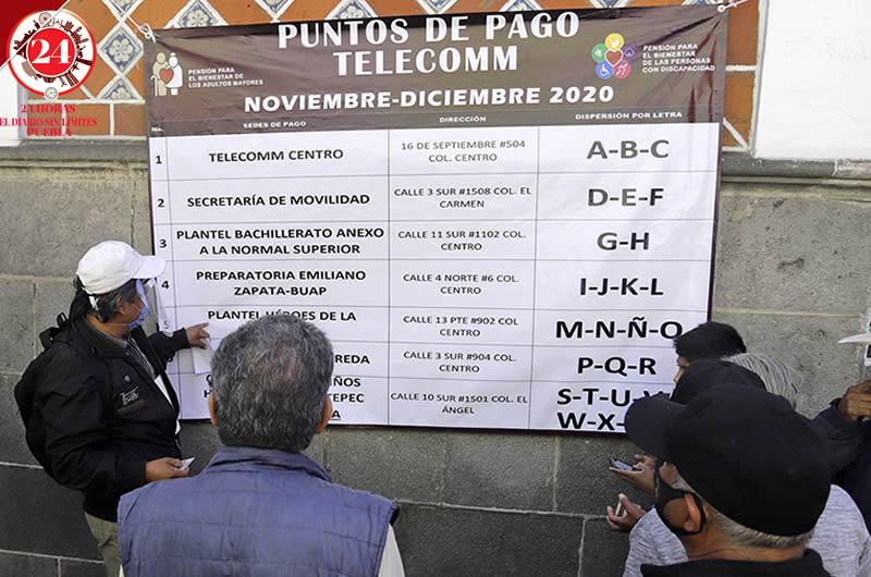 En las instalaciones de Telecom, ubicadas en la 16 de septiembre, se colocó un cartel donde se especifican los módulos y las letras de los apellidos donde podrán cobrar sus pensiones, por lo que queda de la siguiente manera: