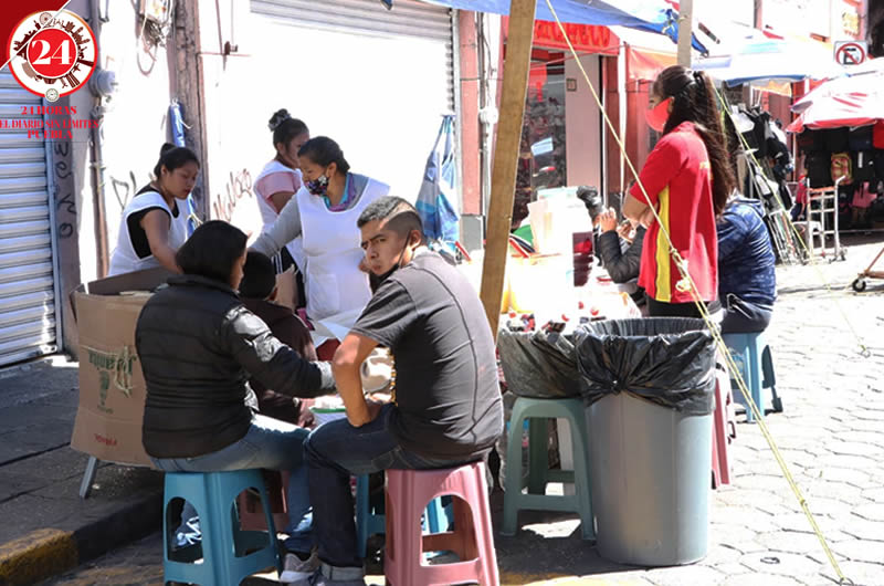 Los vendedores ambulantes volvieron a instalarse en el Centro Histórico de Puebla en pleno Día de Muertos.