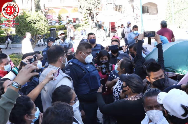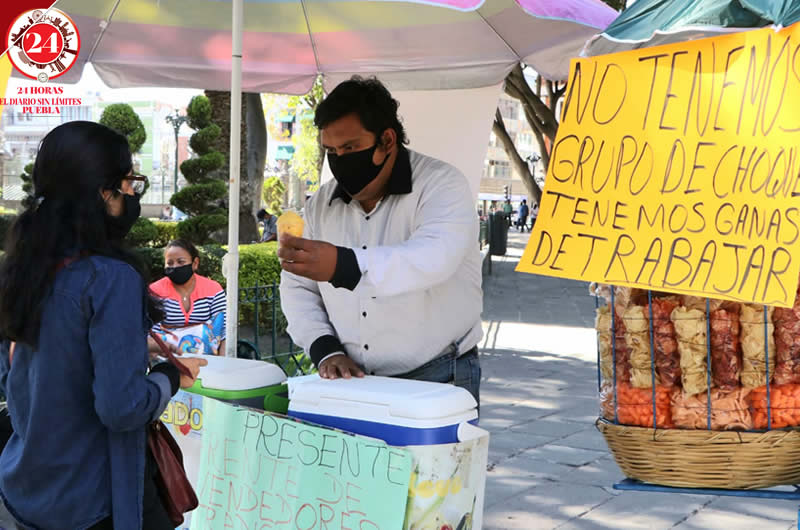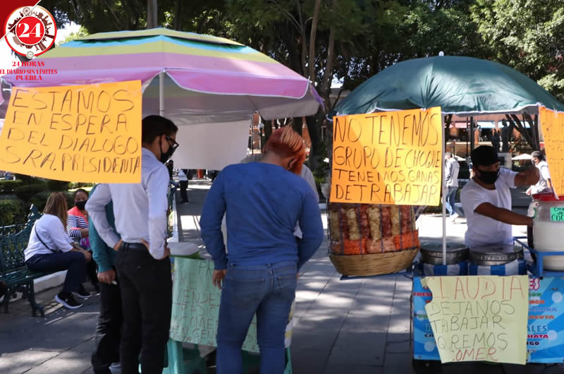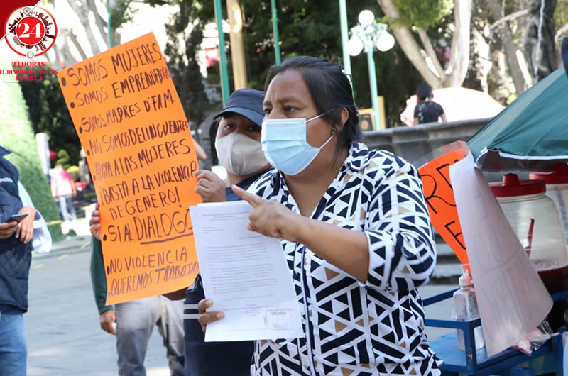 Pese a la insistencia de los trabajadores del Ayuntamiento para que se retiren del Zócalo, al indicarles que no pueden vender, los comerciantes aseguraron que no estaban comercializando sus productos, sino que se estaban manifestando.