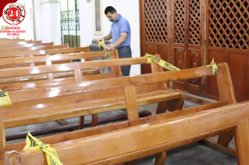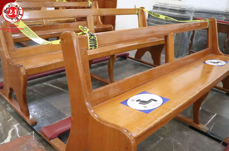 Esto pues, debido a la pandemia de Covid-19 no estará permitido que los feligreses se queden en las a rezar como tradicionalmente se hace, por lo que colocaron sellos en las bancas para evitar esta acción.