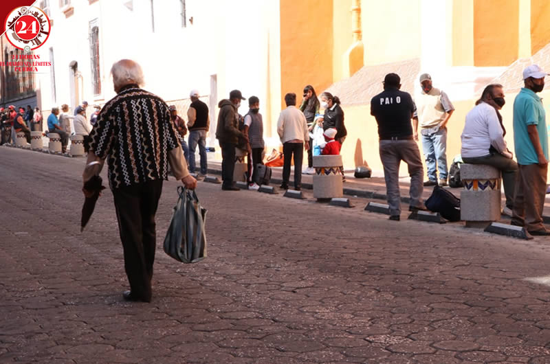 Las personas hicieron fila usando su cubrebocas en esta zona del Centro Histórico, para recibir productos de primera necesidad el pasado 25 de diciembre.