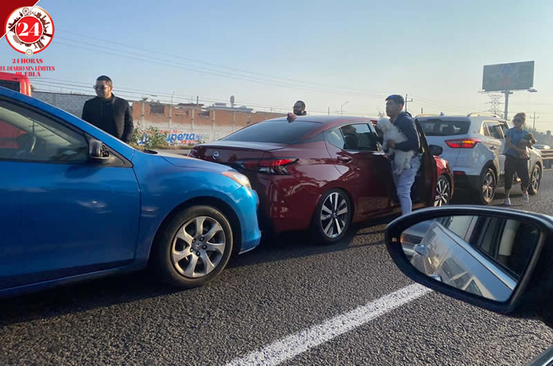 Una carambola de cinco vehículos se registró la mañana de este 24 de diciembre sobre la autopista México- Puebla altura del puente de La Resurrección.