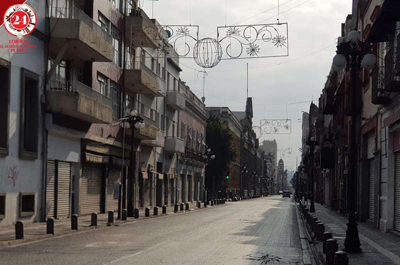 También, se pudo observar las calles vacías en la mañana de navidad en la capital del estado de Puebla.