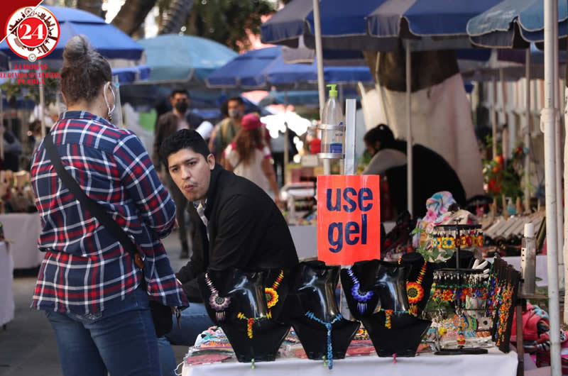Los comerciantes del corredor artesanal El Carolino trabajan con todas las medidas sanitarias para evitar contagios de Covid-19.