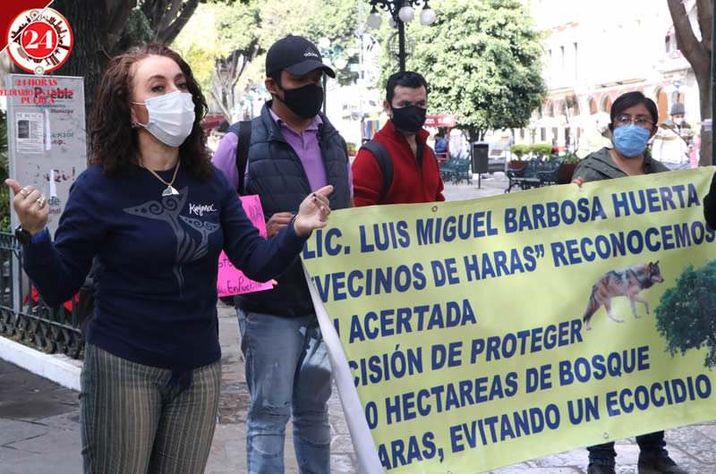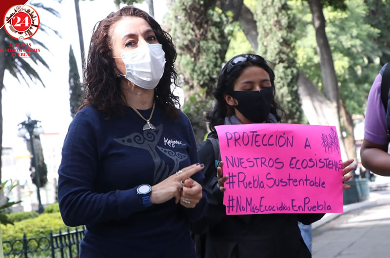 Defensores del Bosque Encinos se manifestaron la mañana de este martes en el Zócalo de Puebla, para pedir al gobierno estatal que inicie con los trámites que corresponda para declarar esta área como reserva ecológica.
