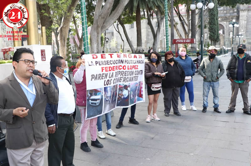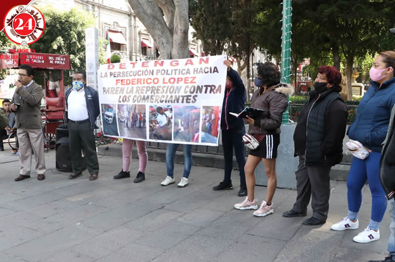 La agrupación de comerciantes Fuerza 2000 se volvió a manifestar la mañana de este lunes en el Zócalo de Puebla, exigiendo un alto a la represión y la supuesta persecución política.
