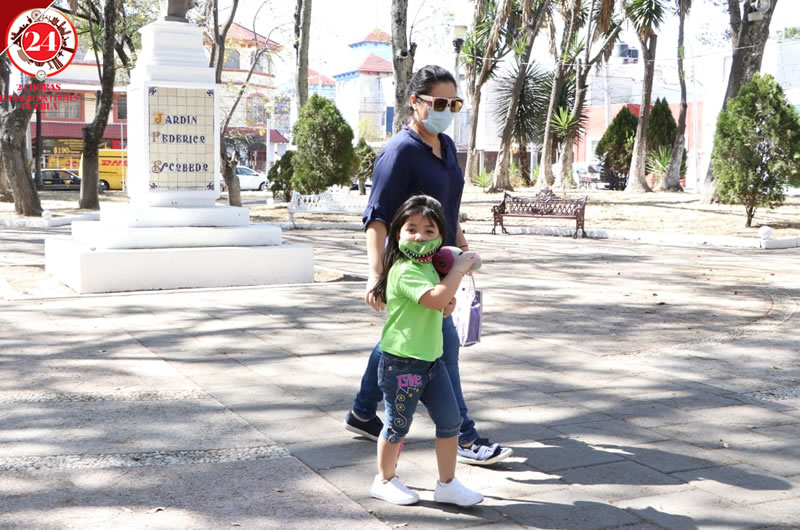 También, padres con sus hijos salieron a “dar la vuelta” luego de varias semanas de contingencia sanitaria.