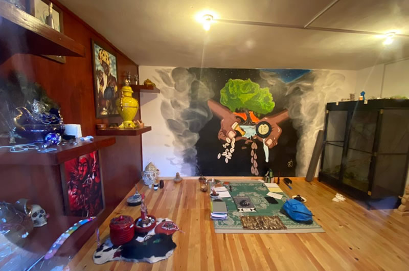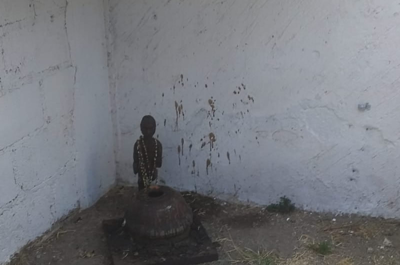 En el segundo cuarto, con una superficie aproximada de dos por tres metros, había diversos animales, aves muertas y una tortuga que también había perdido la vida; también fueron descubiertos en la propiedad signos de sacrificios, cultos y ritos.