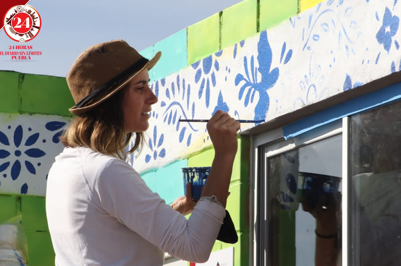 Los muralistas Sebastián Salazar, de origen español, y Ana Sellana, Sella, uruguaya, se encargaron de darle el toque artístico a estas viviendas en Azumiatla.