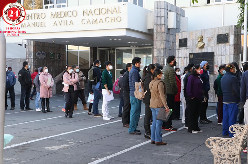 En el hospital del IMSS Manuel Ávila Camacho, conocido como San José, las filas continúan siendo largas, pues solo será este día en que se aplique la primera dosis a los médicos, enfermeras, personal de limpieza y demás trabajadores que atiendan a pacientes Covid-19.