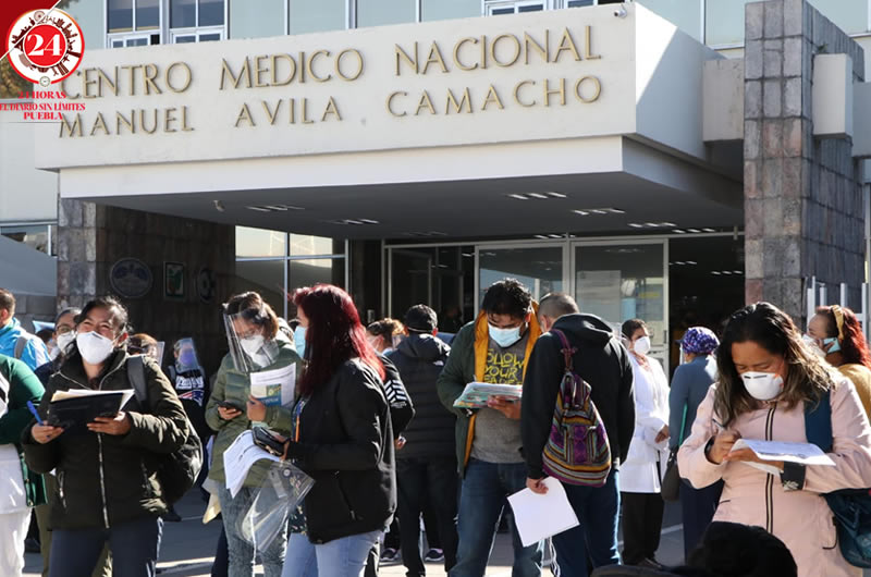 El Hospital Manuel Ávila Camacho conocido como San José, registra aglomeraciones por la jornada de vacunación antiCovid que se realiza este jueves, donde también se encuentra el personal del IMSS de La Margarita.