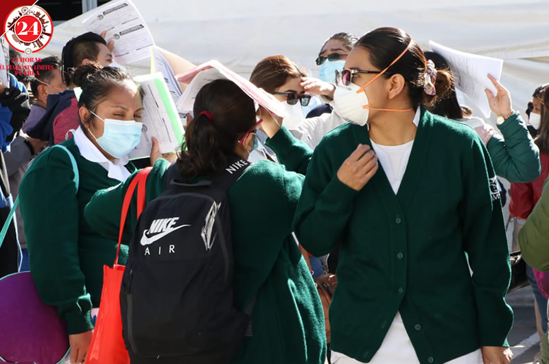 Médicos, enfermeras y personal de limpieza hacen fila para recibir la dosis, y mientras esperan llenan unos formatos con información que solicita la federación; sin embargo, no solo están los trabajadores de San José, también del IMSS de la Zona 20 que no habían sido vacunados.