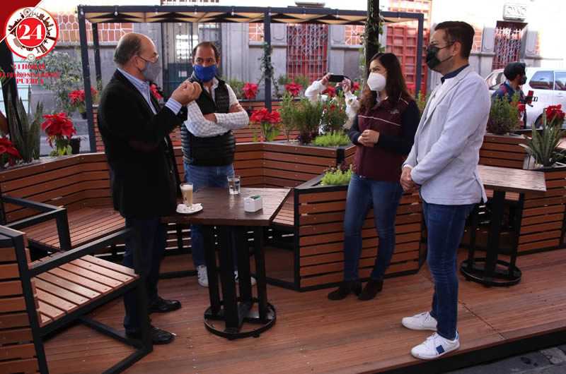 En esta zona del Centro Histórico se instalaron seis parklets para que los clientes de los negocios circundantes puedan consumir alimentos y se respete al mismo tiempo el decreto estatal de reapertura parcial de negocios.