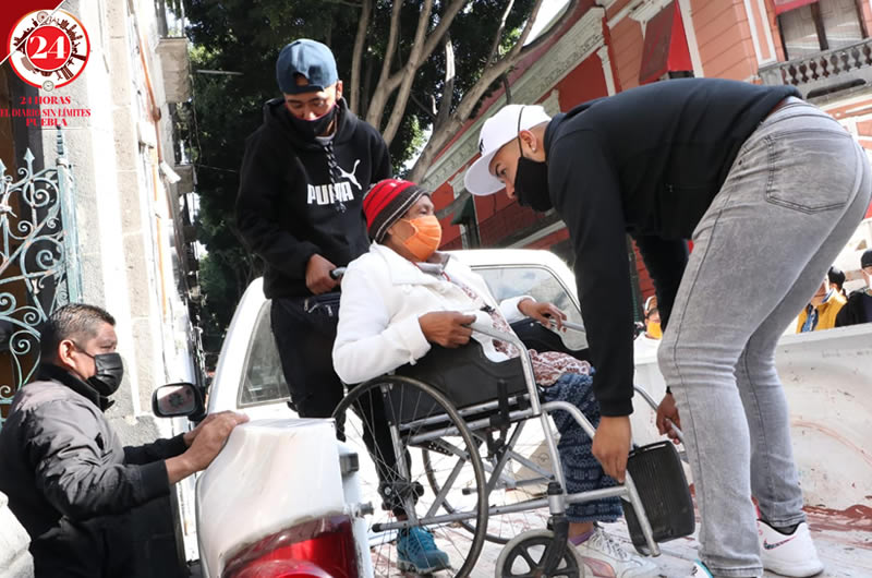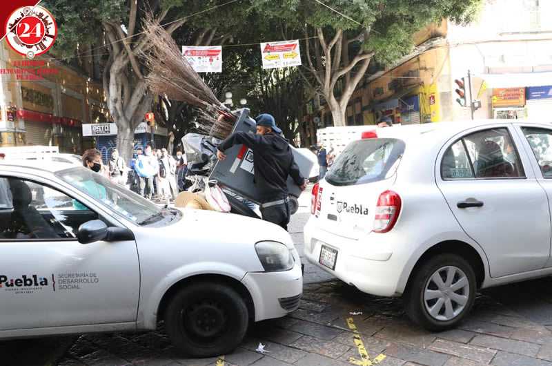 El Ayuntamiento de Puebla de nueva cuenta colocó vehículos para bloquear calles y evitar que los ambulantes de instalen, pero perjudicaron al peatón y la movilidad de personas con discapacidad, una mujer en silla de ruedas tuvo que ser cargada por seis personas para poder cruzar.