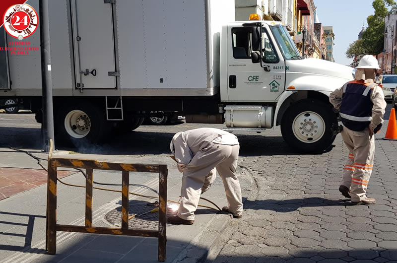 Personal de la Comisión Federal de Electricidad (CFE) realizan trabajos en las calles la 7 sur y 3 poniente, por lo que se pide a los automovilistas extremar precauciones.