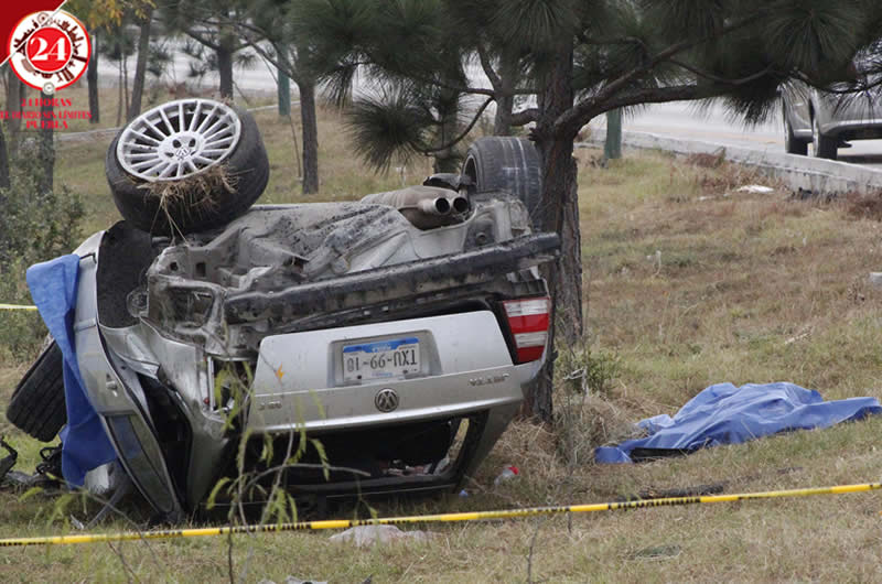 Fue la mañana de este domingo donde el conductor del vehículo Volkswagen Jetta de color gris, con placas de circulación TUX 9918 del estado de Puebla, perdió el control e impacto con la guarnición, saliendo proyectado del camino y girando muchas veces hasta que el vehículo quedó llantas arriba. En la escena había envases de cerveza.