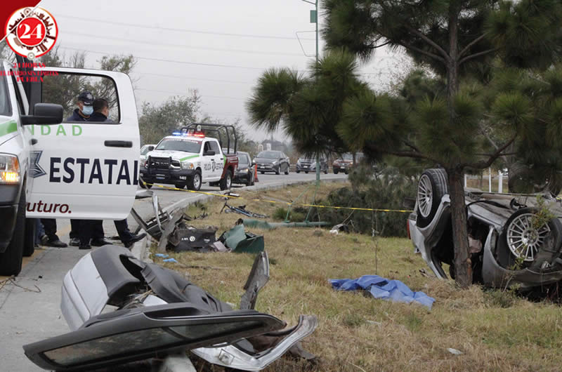 Un hombre muerto, una mujer gravemente lesionada y un automóvil destrozado fue el saldo que dejó una aparatosa volcadura de un automóvil sobre Periférico Ecológico a la altura de Camino Real a Cholula, con sentido a La Vista.