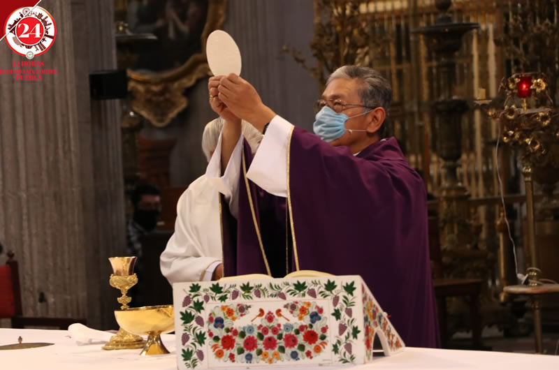 En la Catedral de Puebla Monseñor Tomás López Durán encabezó la eucaristía, donde pidió a los poblanos orar para que la pandemia termine pronto.