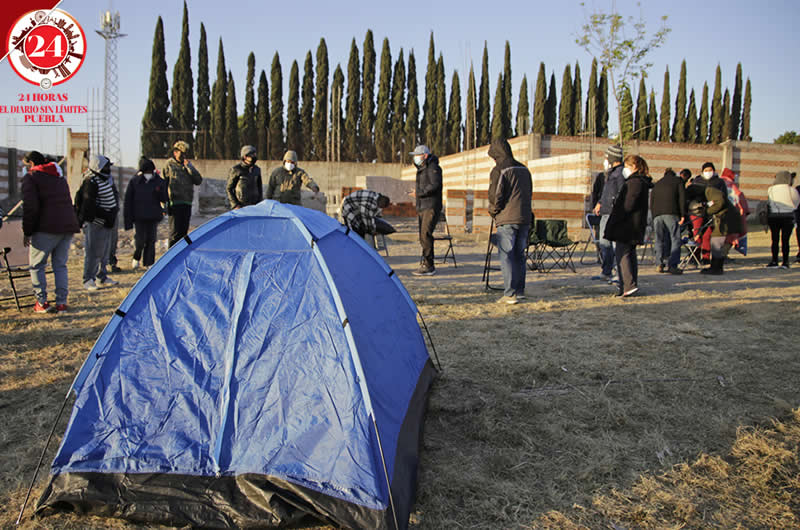 Los poblanos incluso durmieron en casas de campaña para asegurar su lugar y ser inmunizados este jueves.