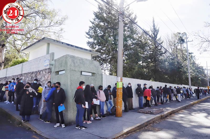 Decenas de jóvenes se formaron desde muy temprano afuera de la 25 zona militar en la ciudad de Puebla, para realizar el proceso de admisión a las diferentes carreras que ofrece la Secretaría de la Defensa Nacional.