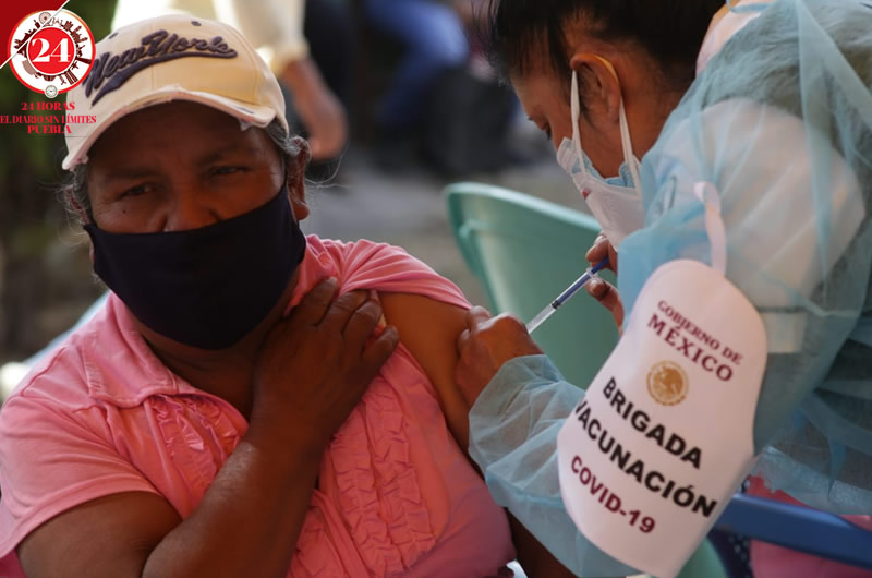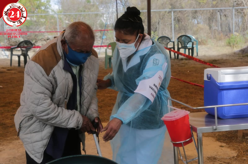 Personal médico llevó a cabo este viernes la vacunación de personas de la tercera edad en el municipio de Tecali de Herrera, en la mixteca poblana.