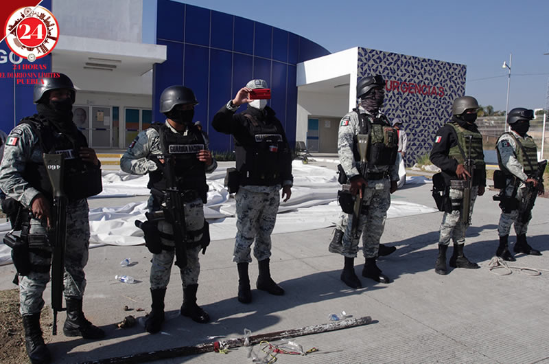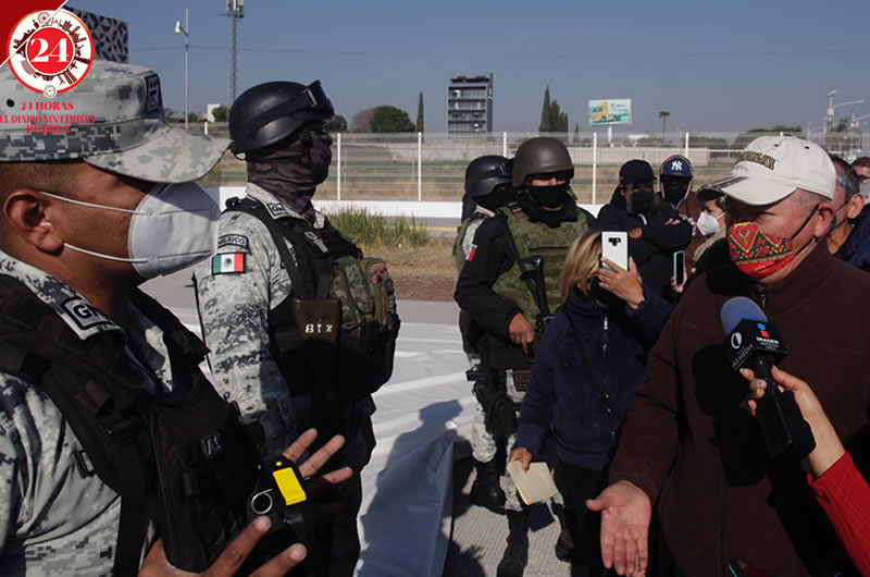 Elementos de la Guardia Nacional acudieron esta mañana al CESSA de Tlaxcalancingo para pedir el retiro de adultos mayores, luego de que se terminaran las vacunas en el municipio de San Andrés Cholula.