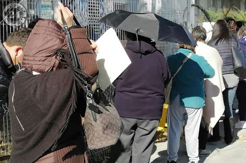 Los que se formaron desde la noche del martes, amanecieron el miércoles recargados en la barda del Centro Escolar de San Andrés, además de que pasaron una noche muy fría, un amanecer de 6 grados centígrados, mitigando el frío con doble chamarra, gorro, bufanda, guantes y hasta cobertor.