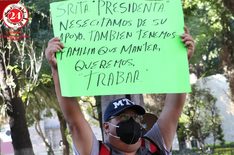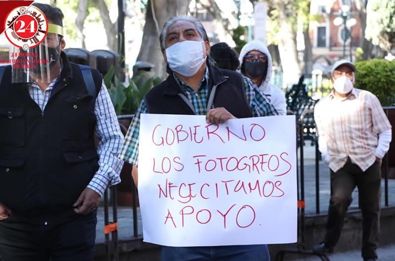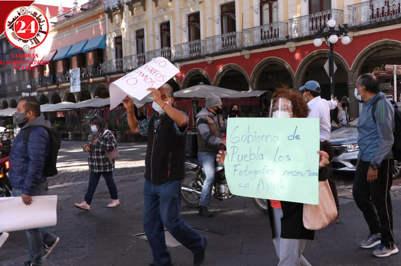 La agrupación de fotógrafos y videografos sociales, salieron a manifestarse la mañana de este miércoles a las calles de la ciudad de Puebla para pedir al ayuntamiento les otorgue apoyos económicos o permita la reapertura de sus centros de trabajo.