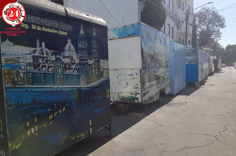 Los vendedores que trabajan en los alrededores de la facultad de Medicina de la BUAP y el Hospital Universitario, se colocaron de forma ordenada sobre la privada de la 29 poniente y la 27.