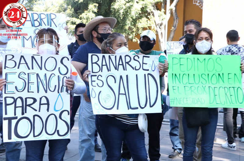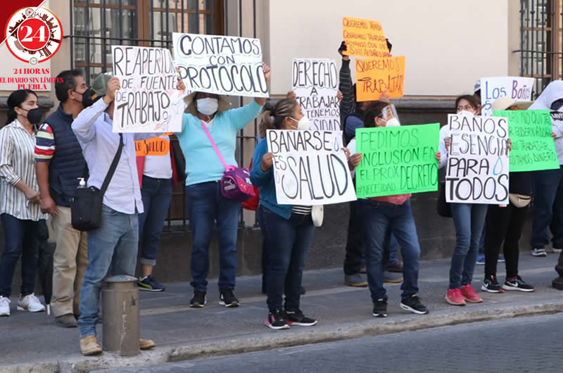 Trabajadores y dueños de baños públicos de nueva cuenta salieron a las calles del Centro Histórico a manifestarse, exigiendo al gobierno estatal y municipal que les permitan reabrir sus negocios.