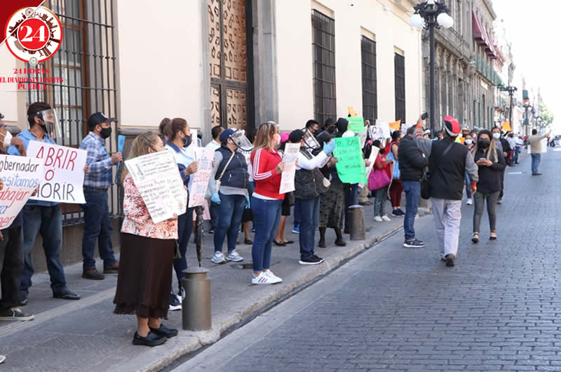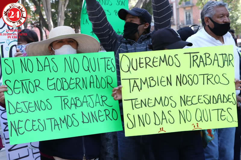Sobre la calle Reforma, entre la 5 y 7 sur, los manifestantes con pancartas y al grito de “queremos, trabajar, queremos trabajar”, exigieron que su demanda sea atendida. Posteriormente se dirigieron a la iglesia de La Villita en el Paseo Bravo, donde siguieron con la protesta.