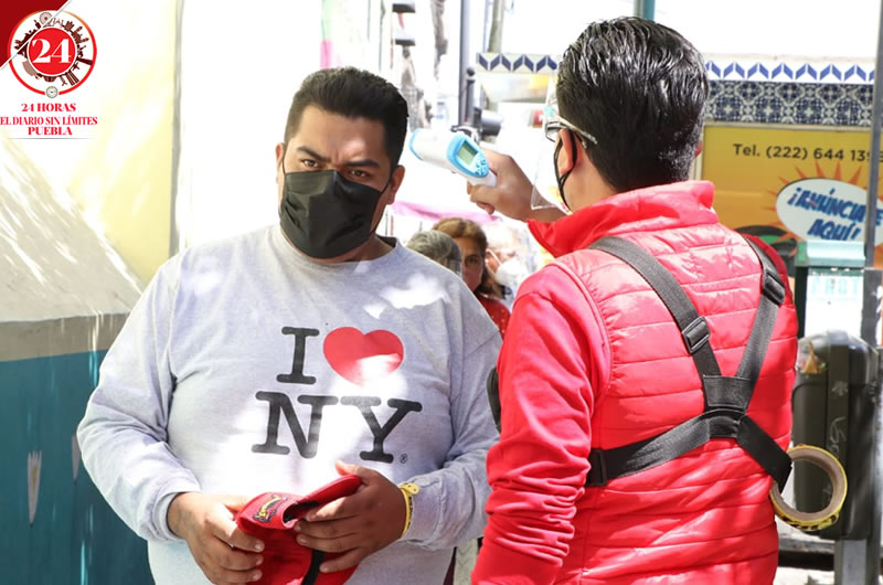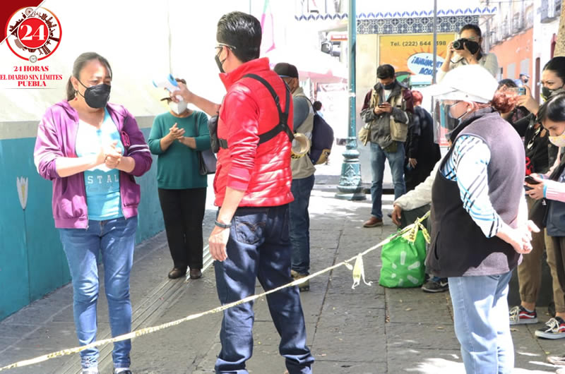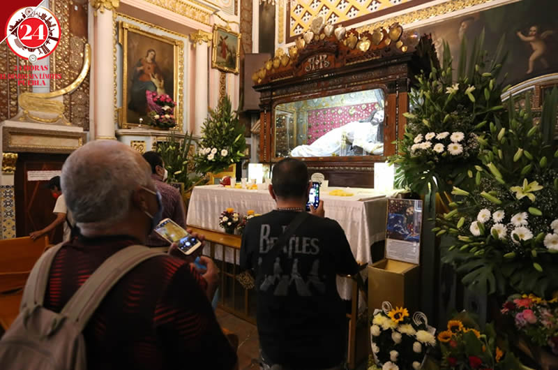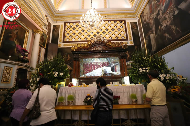 Personal de la parroquia colocó filtros sanitarios y la señalética correspondiente para mantener la sana distancia dentro del templo donde los visitantes solo pueden permanecer un minuto; sin embargo, fue en el patio donde los poblanos se aglomeraron.