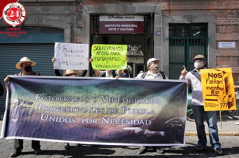 Un grupo de fotógrafos y videógrafos bloquearon la 11 norte para exigir al Ayuntamiento de Puebla que entregue los apoyos prometidos en meses anteriores pues aseguran que están padeciendo la crisis económica que provocó la pandemia.