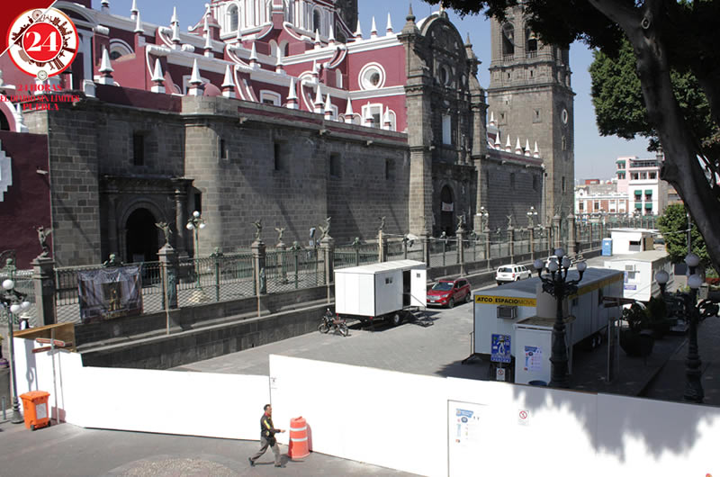 La intervención del Zócalo de Puebla ya dio inicio luego de la colocación de un muro de madera con que se aisló la zona como parte del proyecto de remodelación.