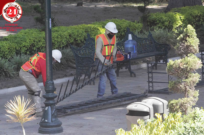 Este viernes se pudo observar que los trabajadores ya realizan el retiro de algunas estructuras metálicas que rodean los jardines.