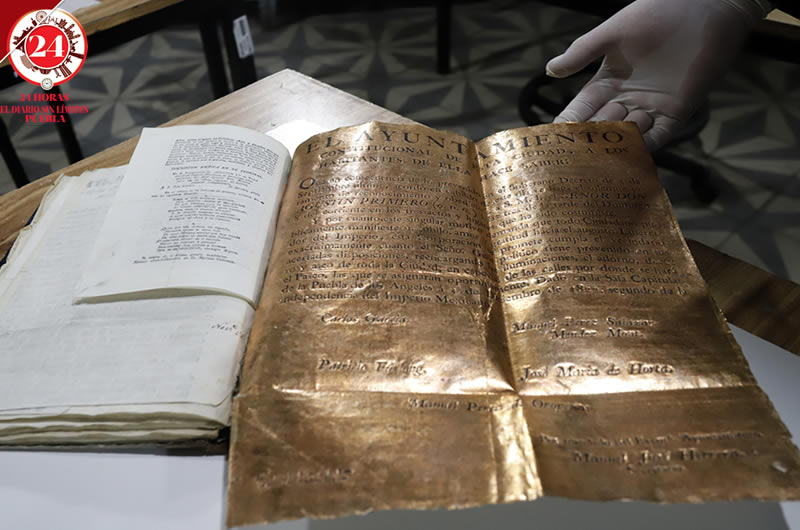 En el Archivo Histórico Municipal de Puebla fueron encontradas hojas doradas y plateadas, las cuales serán analizadas por expertos para conocer si están elaboradas con oro amarillo o blanco.