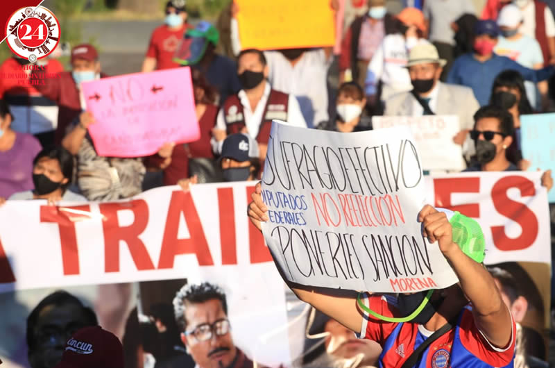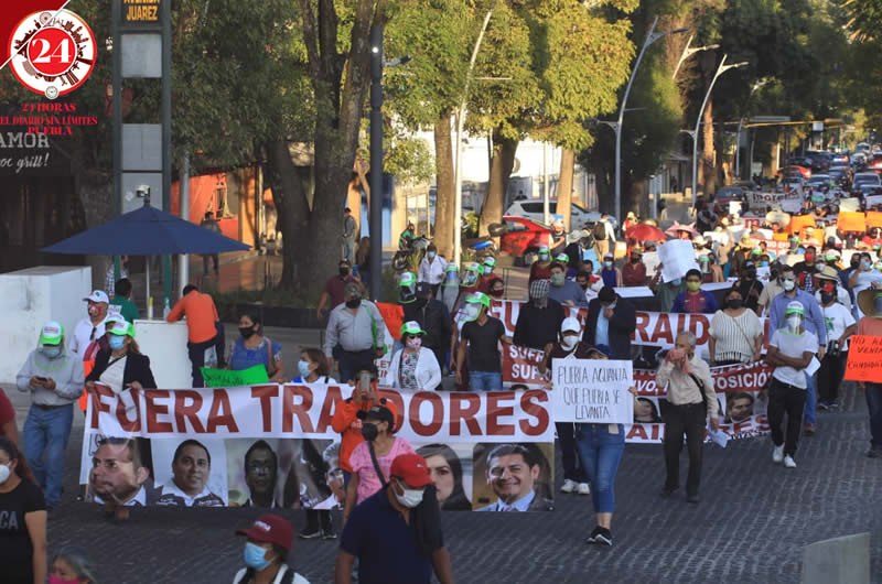 Por el Paseo Bravo y calles del Centro Histórico, reprocharon la imposición de perfiles en la interna morenista.