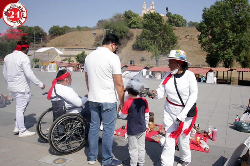 Ante el cierre de la zona arqueológica debido a la pandemia de Covid-19, locales y turistas acudieron a la explanada del Parque Soria en San Pedro Cholula por la llegada del equinoccio de primavera.