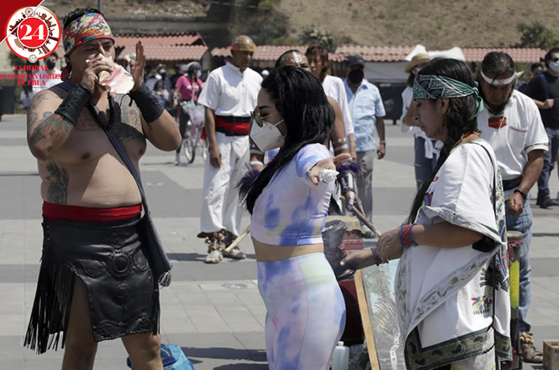 Turistas y locales vulneraron las medidas de sana distancia en torno a la Pirámide de Cholula, durante los primeros minutos del domingo 21 de marzo, ante la entrada de la primavera.